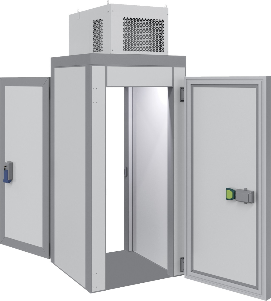 Холодильной машиной в подобных камерах служит потолочный моноблок с автоматической системой выпаривания конденсата, устанавливаемый в паз потолочной панели.